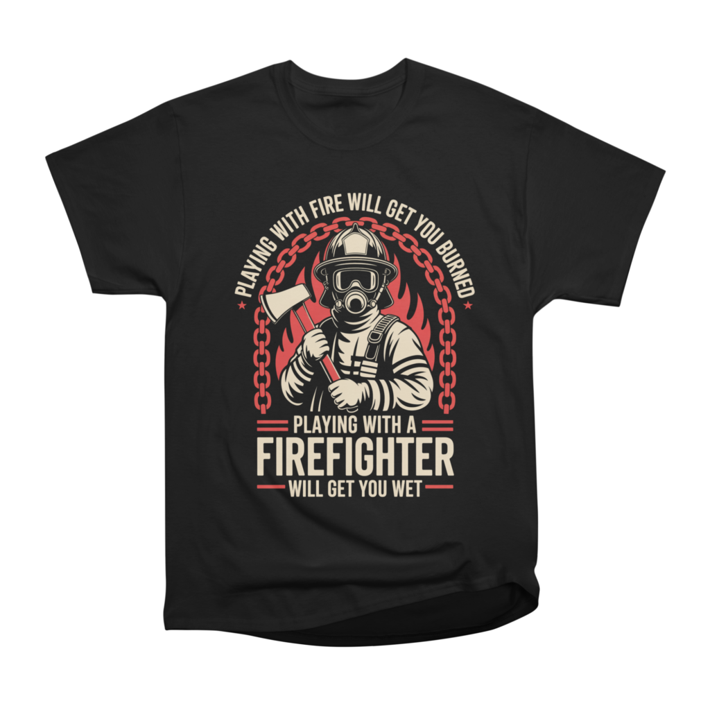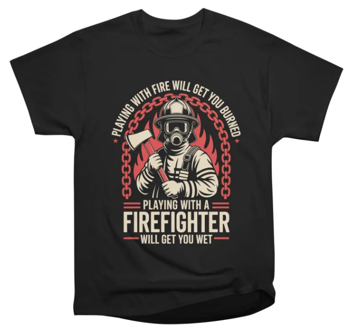 Command the room with a visual tribute to the resilience and character of our bravest citizens. This artwork features a professionally illustrated firefighter in full turnouts, complete with a helmet, visor, and oxygen mask, ready to face the heat. Clutching a fire axe and set against a vibrant background of rising flames and a red industrial chain, the imagery captures the intensity of the profession while incorporating a touch of bold, spirited humor. The text “Playing with fire will get you burned” paired with “Playing with a firefighter will get you wet” adds a clever and memorable twist to the classic fire safety warning.